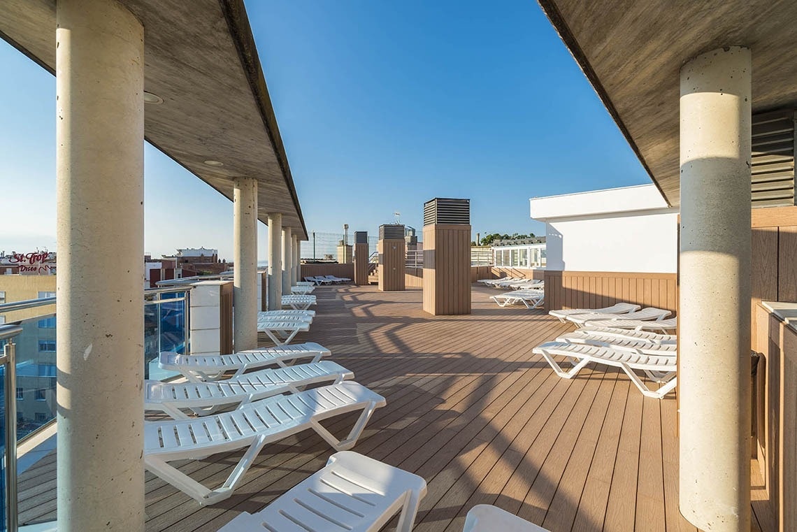 Gaudeix del sol a la nostra refrescant piscina solàrium ubicada a la terrassa de l'hotel.